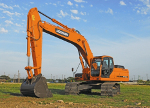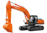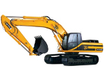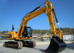 Эксплуатационная масса: 33250 кг Емкость ковша: 0,53 м3 Максимальная глубина копания: 14,8 м Мощность двигателя: 252 л.с.